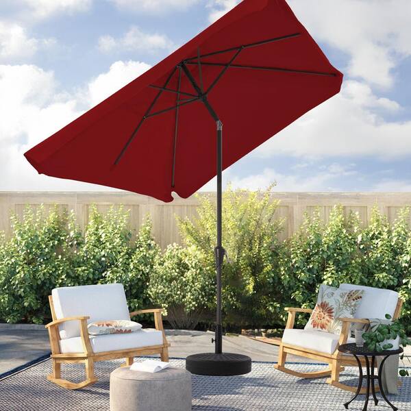 6.5 ft. x 10 ft. Rectangular Steel Market Crank and Tilt Outdoor Patio Umbrella in Red