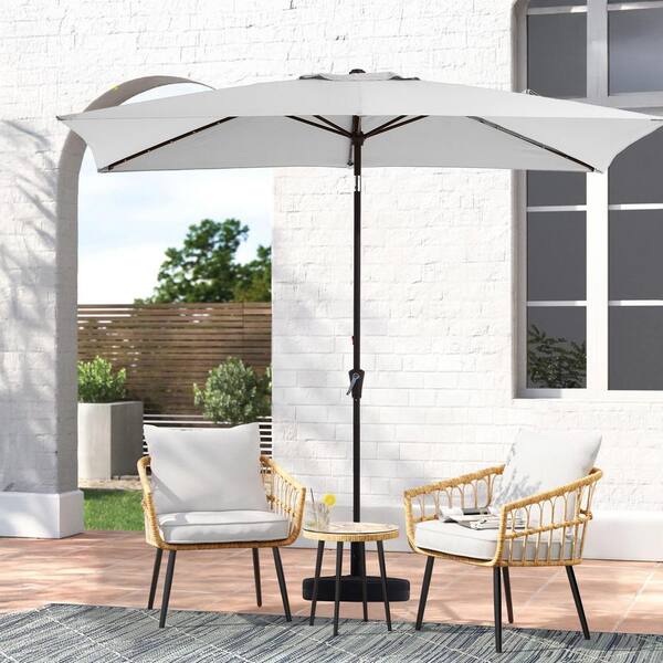 6.5 x 10 ft. Market Solar LED Lighted Tilt Patio Umbrella Rectangular Outdoor Umbrella in Peacock Gray