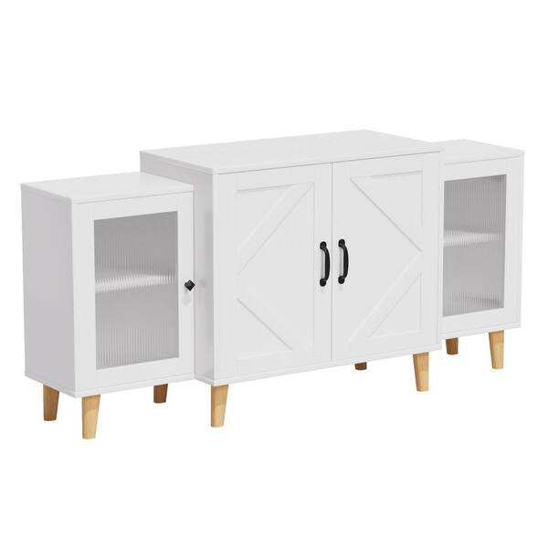 65 in. Freestanding White TV Stand with Glass Doors and Storage, Modern Entertainment Center