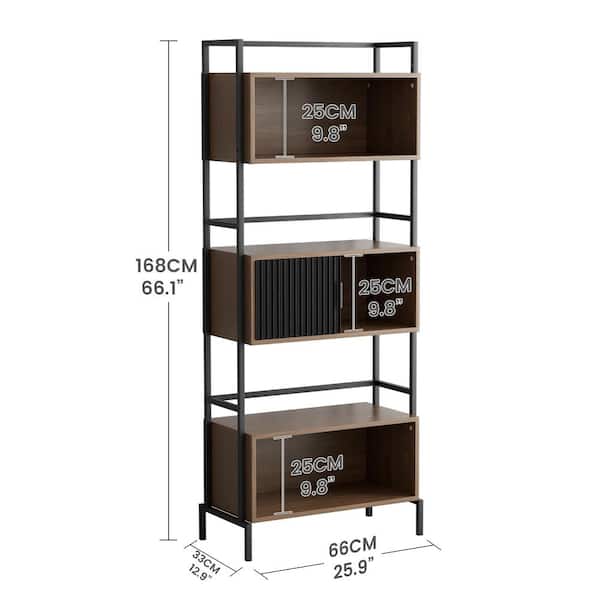 66.1 in. Tall Walnut Wood Bookcase Shelf Organizer 3 Tier Ladder Bookshelf for Home Office, Living Room and Kitchen