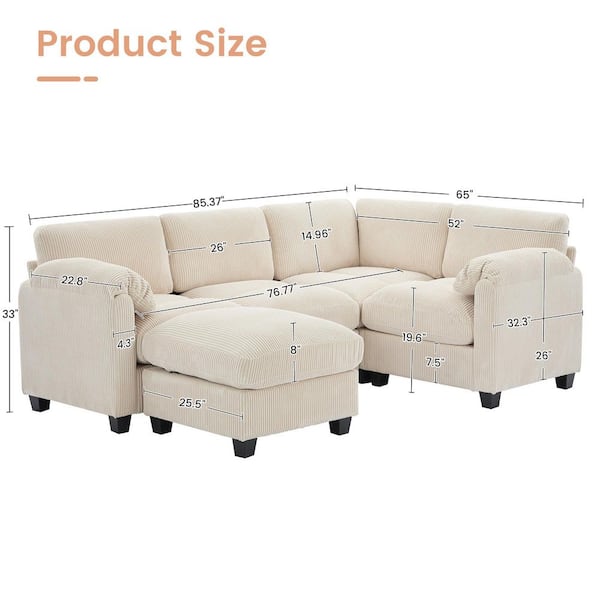 85.37 in.Corduroy Modular L-Shaped 5-Seat Sectional Sofa in Beige for Living Room and Spacious Space