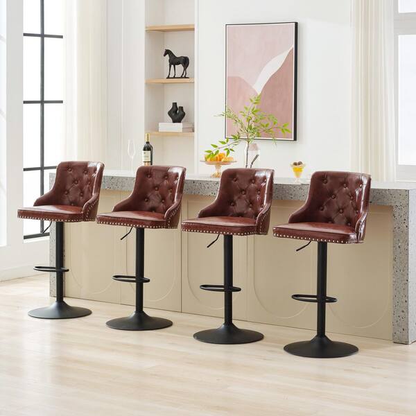 Antique Red Adjustable High Back Bar Stool with Black Metal Frame Counter Height Faux Leather Counter Stool (Set of 4)