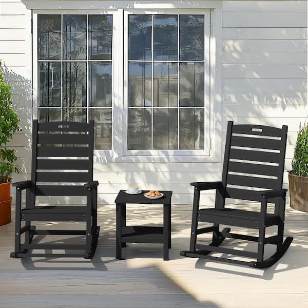 Black HDPE Plastic Outdoor Patio Rocking Chair with Footrest