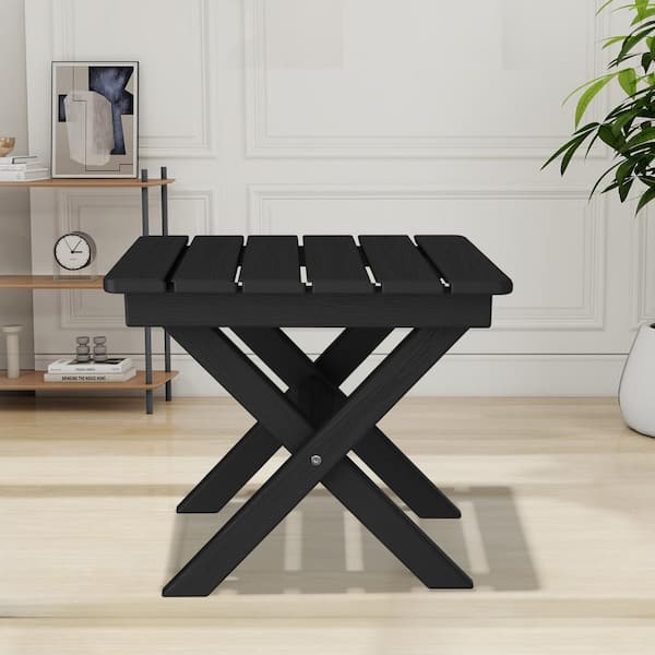 Black HDPE Plastic Portable Patio End Table Folding Outdoor Coffee Table