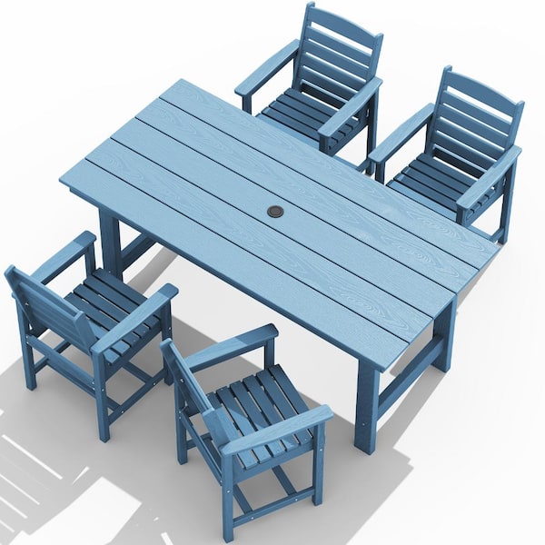 Charlottetown Grey 7-Piece Wicker Outdoor Dining Set with Washed Blue Cushion