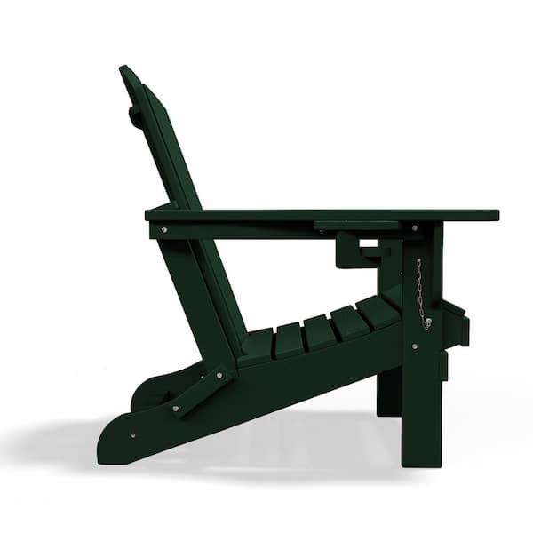 Classic Dark Green Folding Plastic Adirondack Chairs with 2-Cup Holders-Weather Resistant Patio Outdoor Chair (Set of 1)