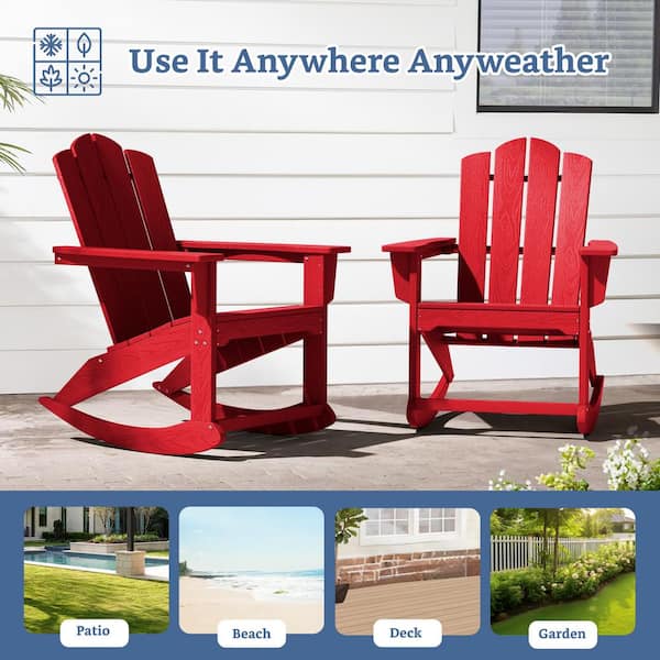 Classic HDPE Plastic Outdoor Rocking Chair in Bright Red