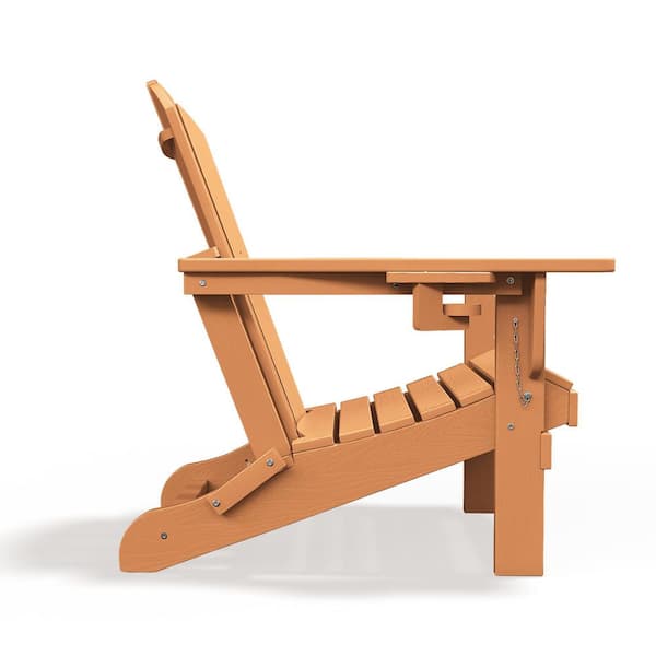 Classic Orange Folding Plastic Adirondack Chairs with 2-Cup Holders-Weather Resistant Patio Outdoor Chair (Set of 1)