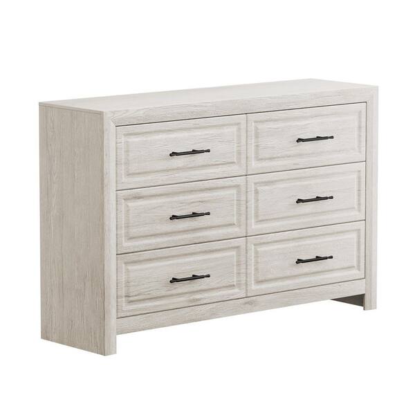 Farmhouse White 6-Drawer Dresser 55.12 in. Chest of Drawers Dresser for Bedroom, Dresser for Clothes Storage, Organizer