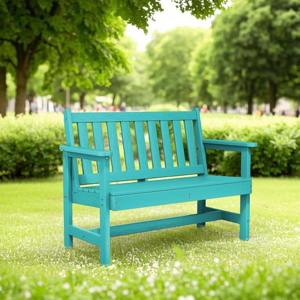Garden Bench All-Weather HDPE 2-Person Plastic Outdoor Bench in Peacock Blue