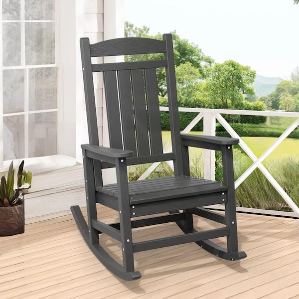HDPE Plastic Slat Adirondack Outdoor Rocking Chair for Porch Rocker, Gray