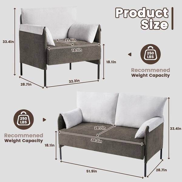 Modern 3-Piece Color Clash Back Armchair Sofa Set Loveseat and 2 Accent Chairs in Gray and Brown