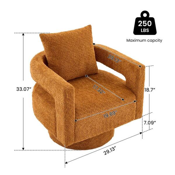 Modern Brown Circle Chenille Boucle Farbic Swivel Accent Arm Chair, Swivel Reading Chair for Bedroom Living Room