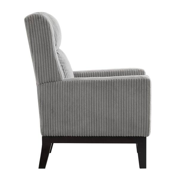 Modern Gray Corduroy Upholstered Arm Chair High-Back Accent Chair with Solid Wood Frame