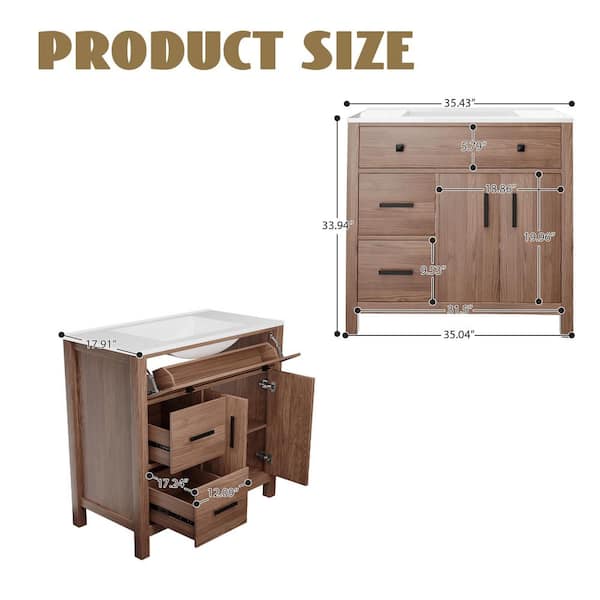 Natural Wood 36 in. Single Sink Freestanding Bath Vanity with White Resin Top and 3-Drawers
