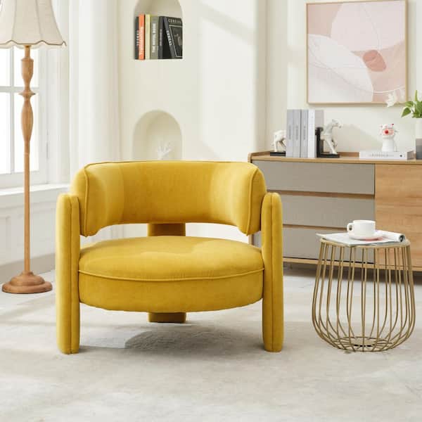 Polyester Solid Wood Round Arm Upholstered Accent Chair in Gold