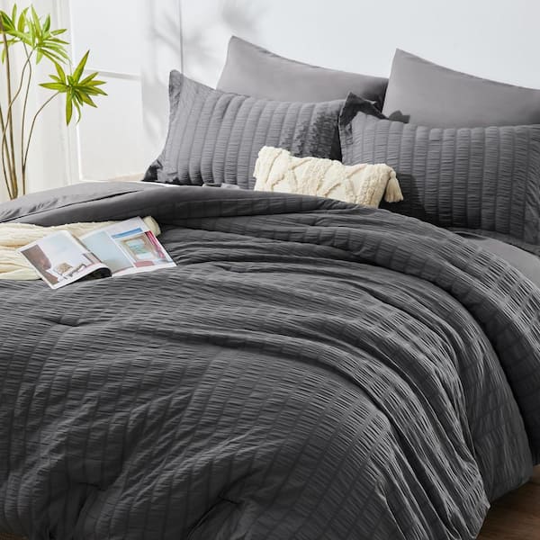 Twin Seersucker 7-Piece Cotton Blend Comforter Set Gray