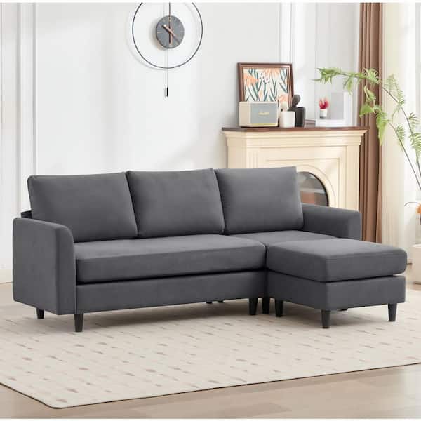 Venice 83.5 in. Wide Clinquant Velvet Sectional Sofa, Dark Gray