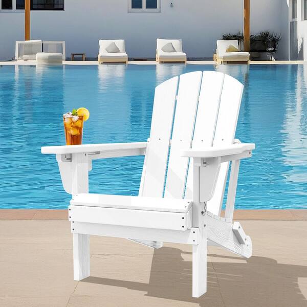 Weather Resistant Plastic HDPE Outdoor Patio Folding Adjustable Adirondack Chair with Cup Holder in White