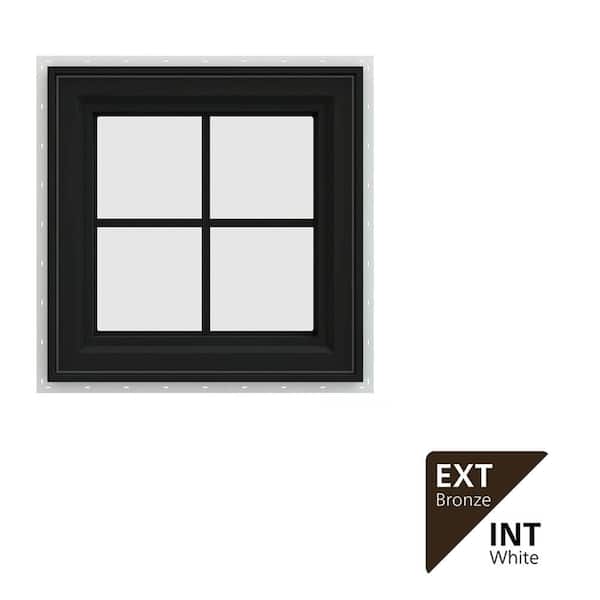 24 in. x 24 in. V-4500 Series Bronze FiniShield Vinyl Left-Handed Casement Window with Colonial Grids/Grilles