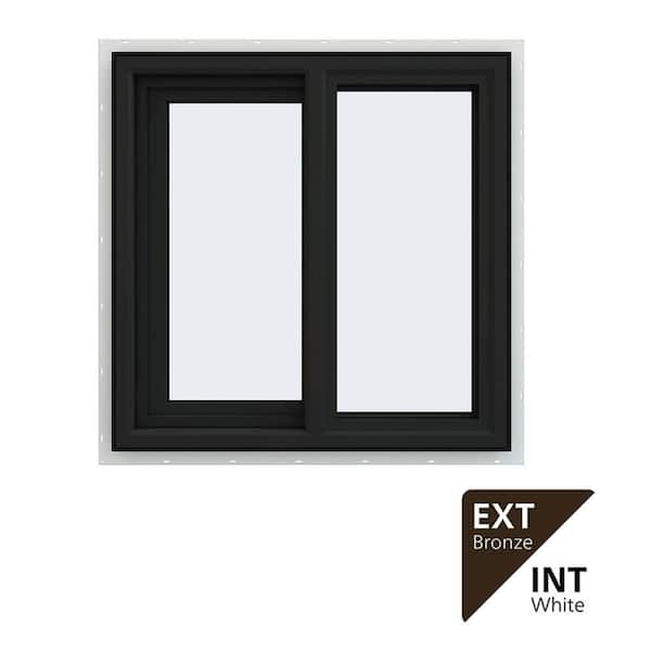 24 in. x 24 in. V-4500 Series Bronze FiniShield Vinyl Left-Handed Sliding Window with Fiberglass Mesh Screen