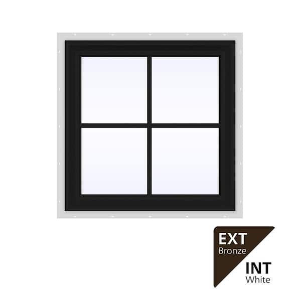 24 in. x 30 in. V-2500 Series Bronze Exterior/White Interior FiniShield Vinyl Fixed Picture Window, Colonial Grid/Grille