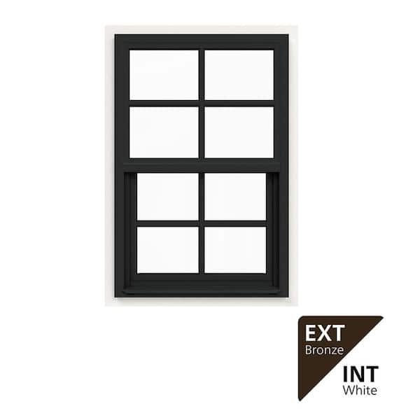 24 in. x 36 in. V-4500 Series Bronze FiniShield Single-Hung Vinyl Window with 4-Lite Colonial Grids/Grilles