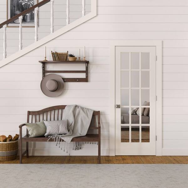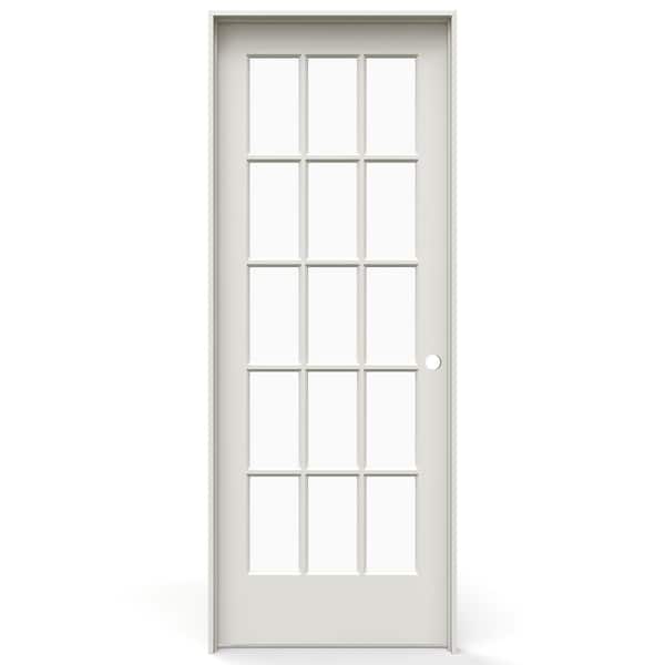 24 in. x 80 in. Left-Handed 15 Lite Clear Glass Primed Solid Core Wood Single Prehung Interior Door with Flat Jamb