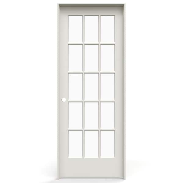 24 in. x 80 in. Right-Handed 15 Lite Clear Glass Primed Solid Core Wood Single Prehung Interior Door with Flat Jamb