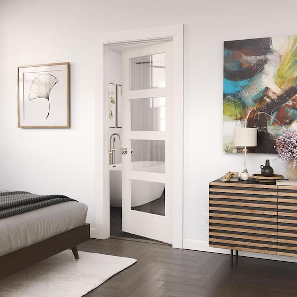 24 in. x 80 in. Right-Handed 4 Lite Clear Glass Primed Solid Core Wood Single Prehung Interior Door with Flat Jamb