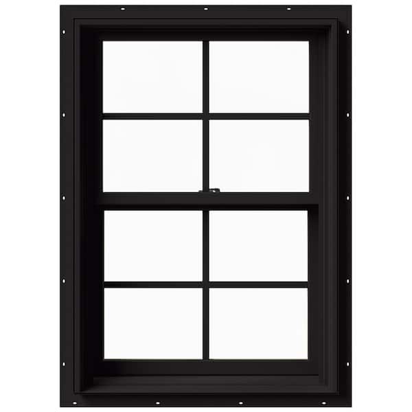 • Black wood double hung window includes colonial grids & nail fin