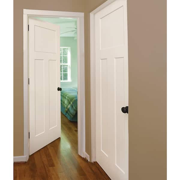 28 in. x 80 in. 3 Panel Craftsman Primed Smooth Molded Composite MDF Interior Door Slab
