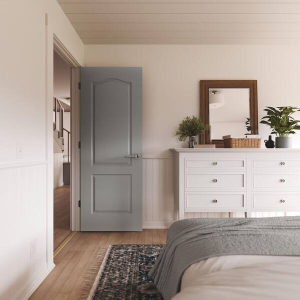 28 in. x 80 in. Camden 2 Panel Arch Left-Handed Hollow Core Gray Pearl Molded Composite Single Prehung Interior Door