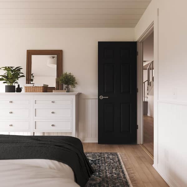 28 in. x 80 in. Colonist 6 Panel Right-Handed Textured Solid Core Black Molded Composite Single Prehung Interior Door