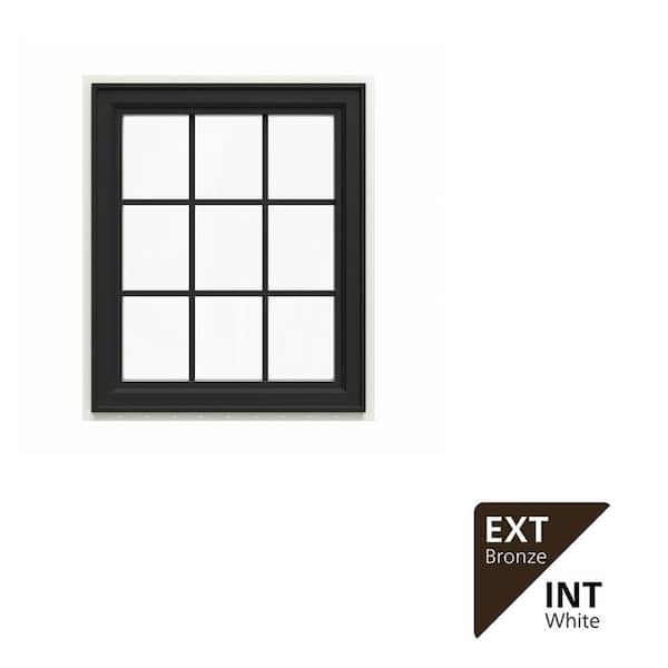 30 in. x 36 in. V-4500 Series Bronze FiniShield Vinyl Left-Handed Casement Window with Colonial Grids/Grilles