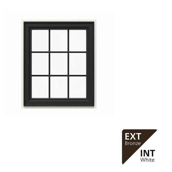 30 in. x 36 in. V-4500 Series Bronze FiniShield Vinyl Right-Handed Casement Window with Colonial Grids/Grilles