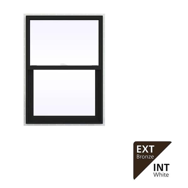 30 in. x 42 in. V-2500 Series Bronze Exterior/White Interior FiniShield Vinyl Single Hung Window, Fiberglass Mesh Screen