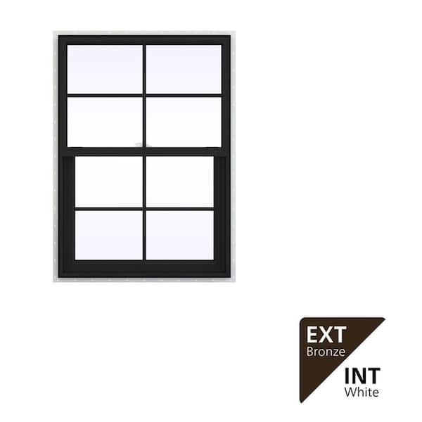 30 in. x 48 in. V-2500 Series Bronze Exterior/White Interior FiniShield Vinyl Single Hung Window, Colonial Grids/Grilles