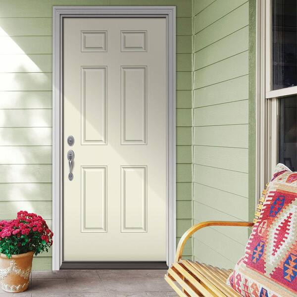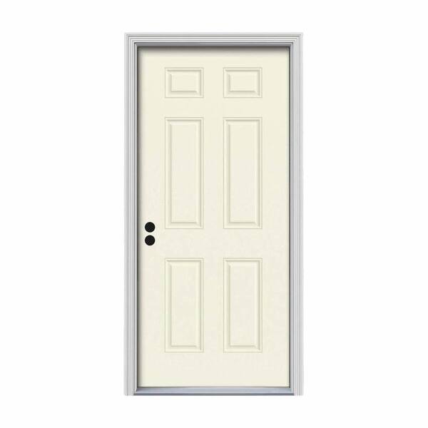 30 in. x 80 in. 6-Panel Vanilla Painted Steel Prehung Right-Hand Inswing Front Door w/Brickmould