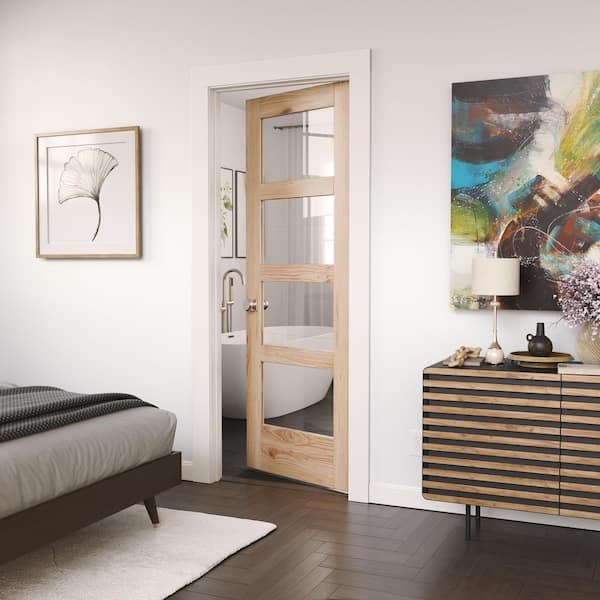 30 in. x 80 in. Right-Handed 4 Lite Clear Glass Unfinished Solid Core Wood Single Prehung Interior Door w/ Black Hinges