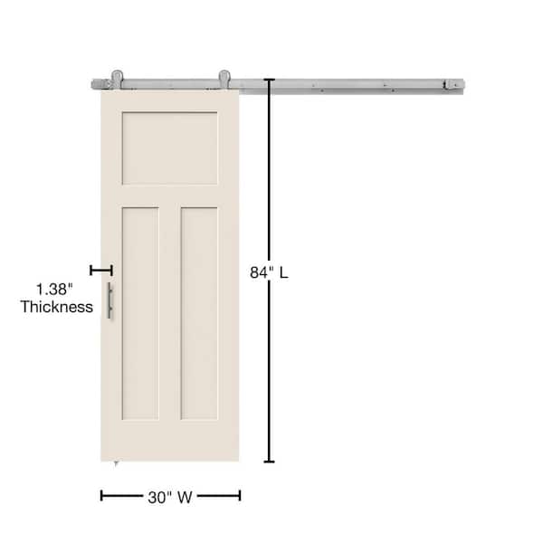30 in. x 84 in. Craftsman Primed Smooth Molded Composite MDF Barn Door with Modern Hardware Kit