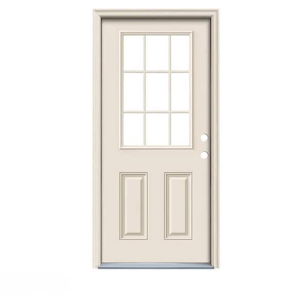 32 in. x 78 in. 2 Panel Left-Hand/Inswing 1/2 Lite Clear Glass Primed Fiberglass Prehung Front Door w/Brickmould