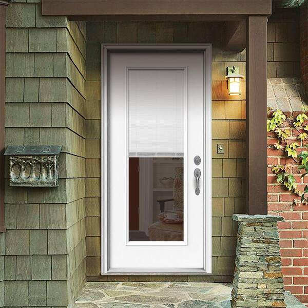 32 in. x 80 in. 1/2 Lite Primed Fiberglass Prehung Left-Hand Inswing Entry Door w/Mini-Blinds and Brickmould