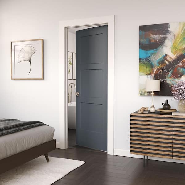 32 in. x 80 in. 3 Panel Birkdale Right-Handed HollowCore Gray Painted Molded Single Prehung Interior Door w/Nickel Hinge