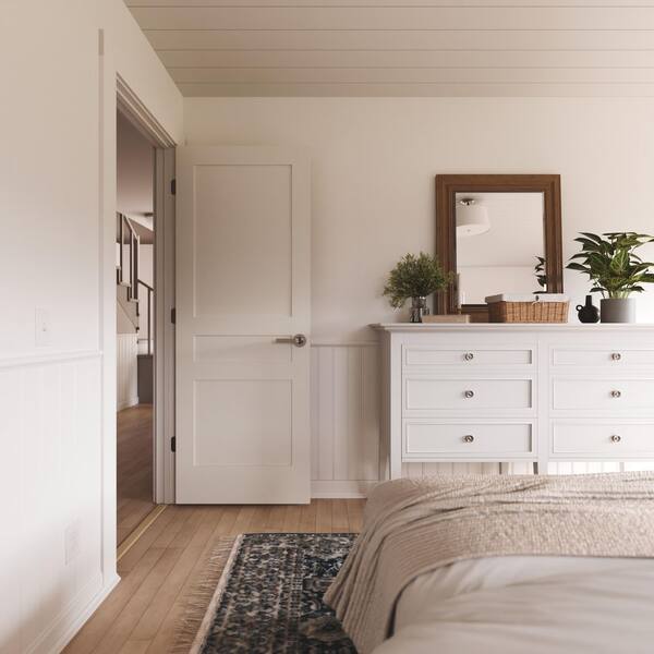 32 in. x 80 in. 3 Panel Flat Left-Handed Solid Core Primed Composite Single Prehung Interior Door w/ Satin Nickel Hinge