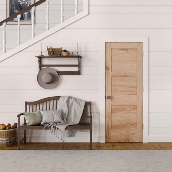 32 in. x 80 in. 3 Panel Left-Handed Solid Core Unfinished White Cedar Wood Single Prehung Interior Door w/ Nickel Hinge