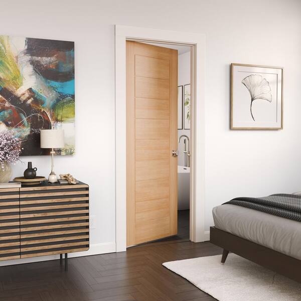 32 in. x 80 in. 8 Panel Groove Left-Handed Solid Core Clear Finish White Oak Wood Single Prehung Interior Door