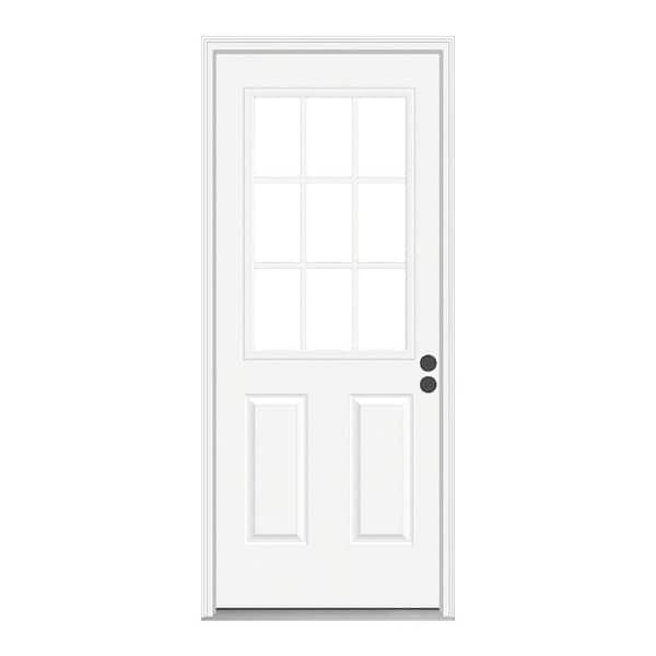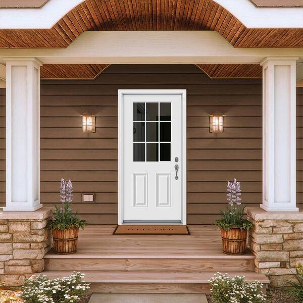 32 in. x 80 in. 9 Lite Primed Fiberglass Prehung Back Door with Brickmould
