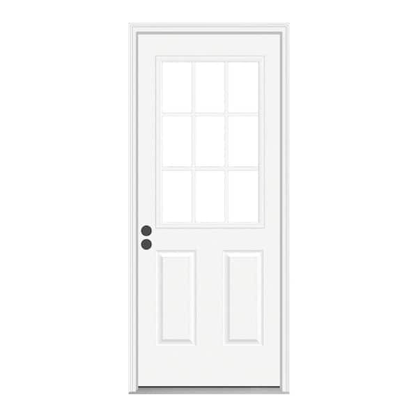 32 in. x 80 in. 9 Lite Primed Fiberglass Prehung Entry Door with Brickmould