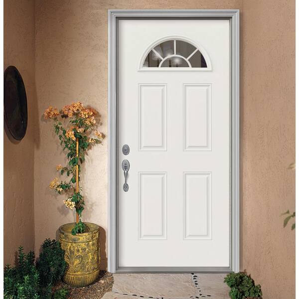 34 in. x 79 in. Fan Lite Primed Steel Front Door Slab